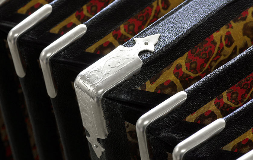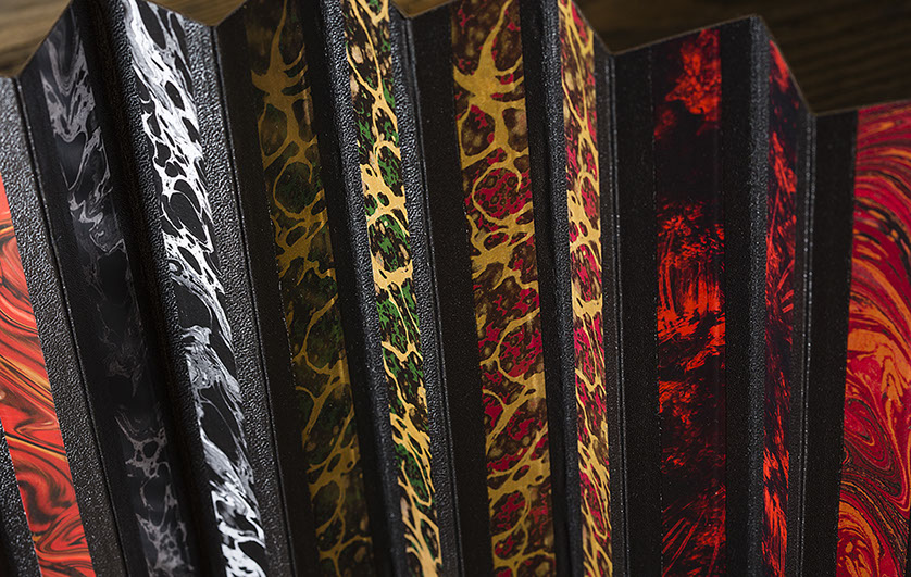 Unser Balgpapier verleiht Ihrem Instrument zusätzlichen optischen Glanz (weitere Balgpapiere auf Anfrage):